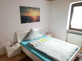 Schlafzimmer: Doppelbett, Kleiderschrank